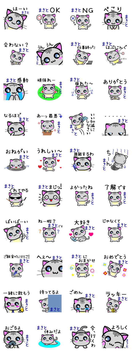 まさとさんに使って欲しい可愛い猫の スタンプです。