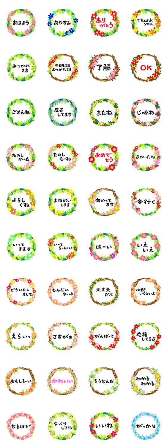 | スタンプ説明 | 大人女子のためのかわいい花のリースのスタンプです。日常会話に最適です。 |