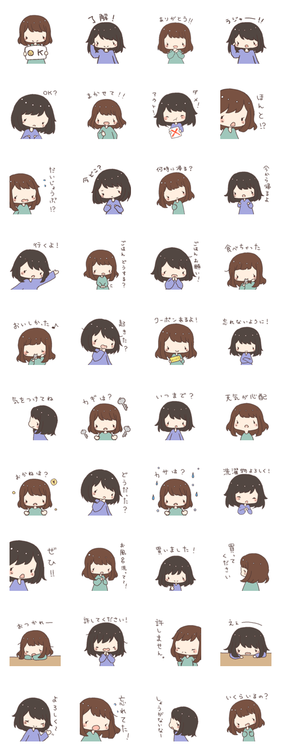 家族へ送るスタンプです。 日常会話にどうぞ。