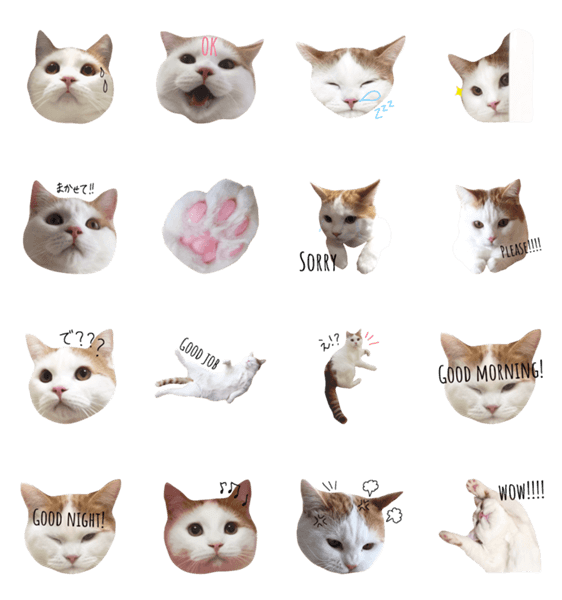 白ネコのあいうえお・・・ってるスタンプ