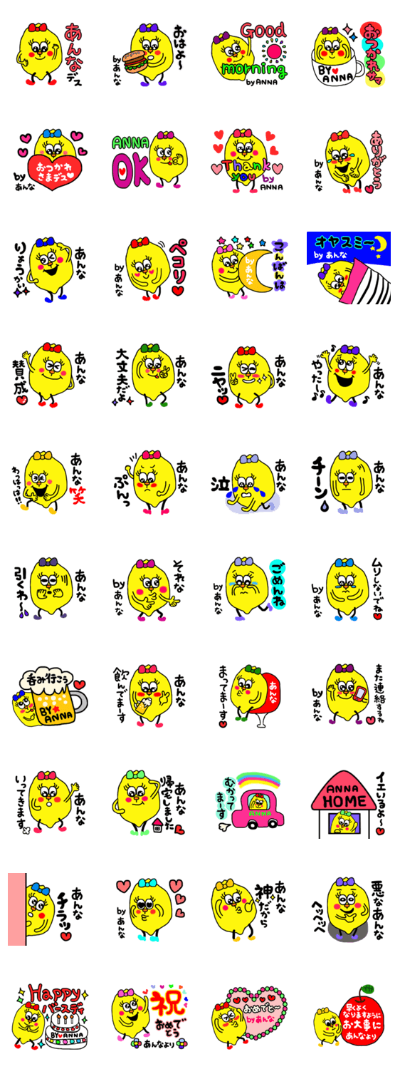 あんなさん専用。日常から誕生日、祝い事にも使えるレモンちゃんスタンプになってます。友達へのプレゼントにも是非。英語も入っているので外国の方へも使えます。