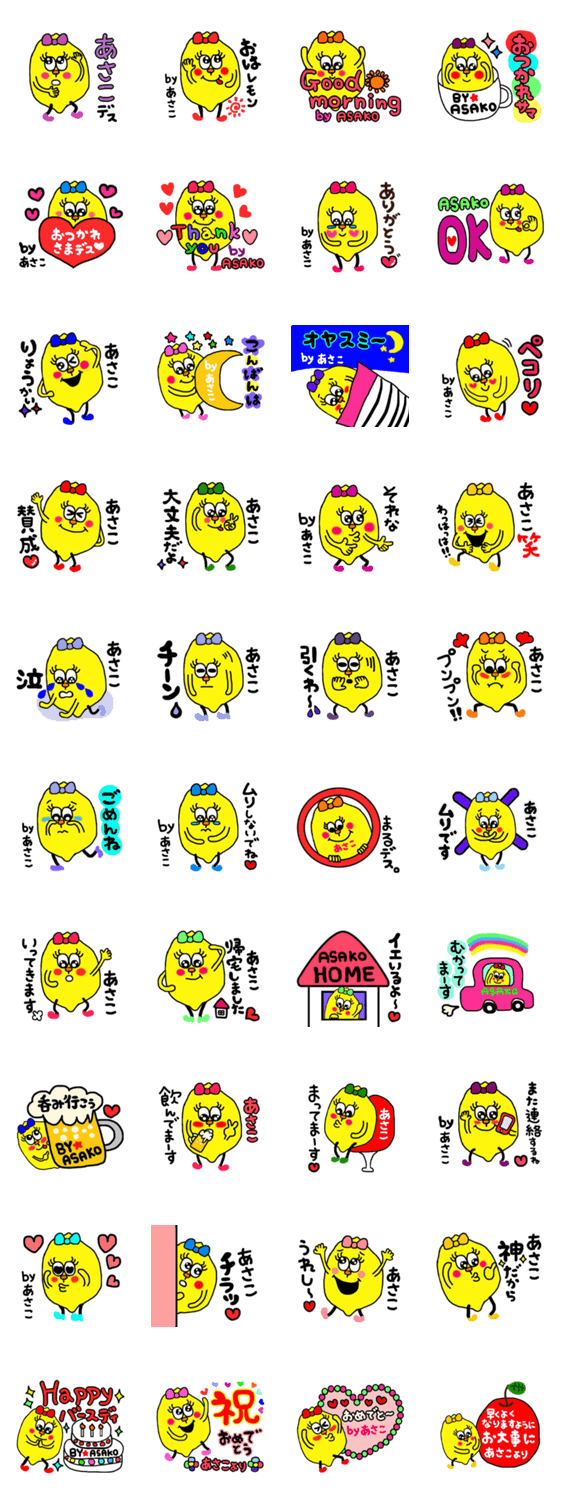 あさこ専用。日常から誕生日、祝い事にも使えるレモンちゃんスタンプになってます。お友達へのプレゼントにも是非。