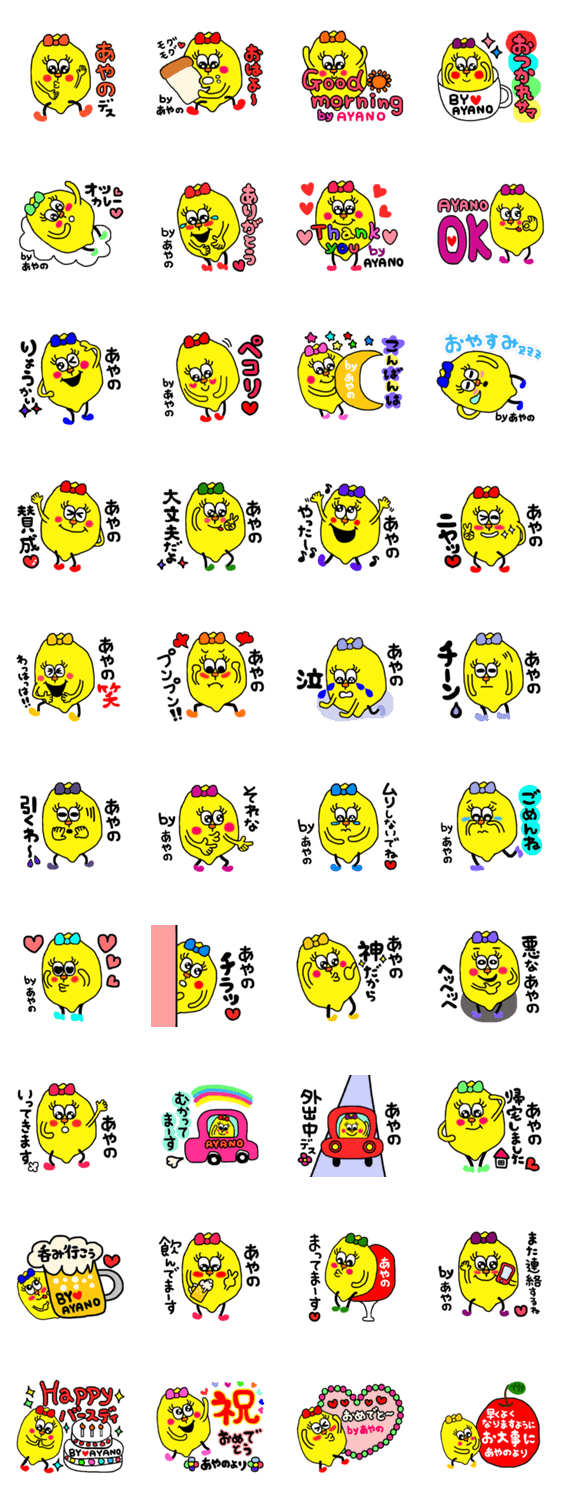 あやの専用。日常から誕生日、祝い事にも使えるレモンちゃんスタンプになってます。お友達へのプレゼントにも是非。