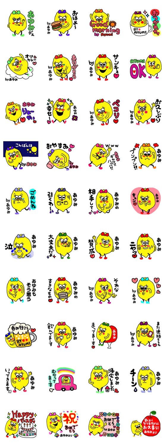 あゆみさん専用。日常から誕生日、祝い事にも使えるレモンちゃんスタンプになってます。お友達へのプレゼントにも是非。