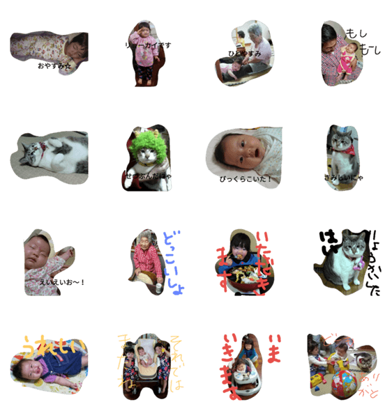 スタンプ説明 私の大事な子供たちとネコのわり