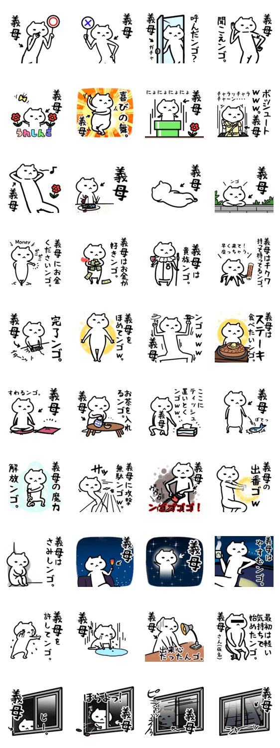 お義母さんからお嫁さん、お婿さんへ送る義母専用の語尾が「ンゴ」スタンプ40個入り