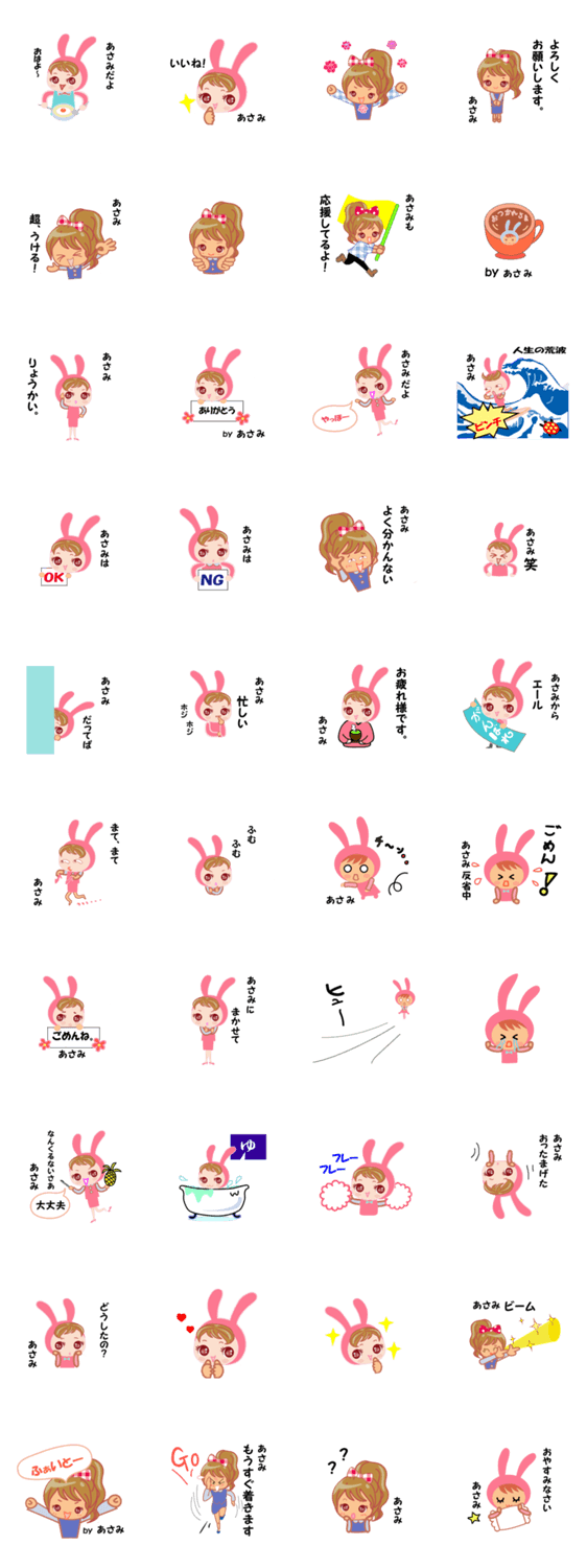 あさみちゃん専用のスタンプです。 時には、うさこのノリで楽しめます。全国のあさみちゃんに届け。