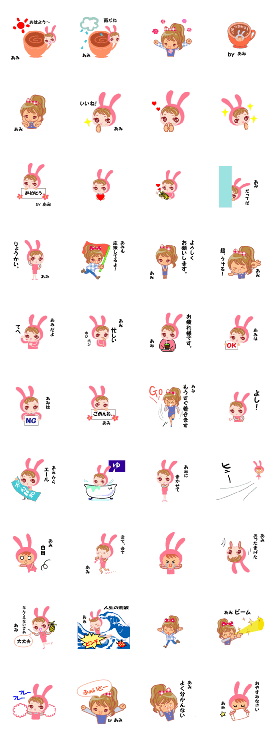 あみちゃん専用のスタンプです。 時には、うさこのノリで楽しめます。全国のあみちゃんに届け。