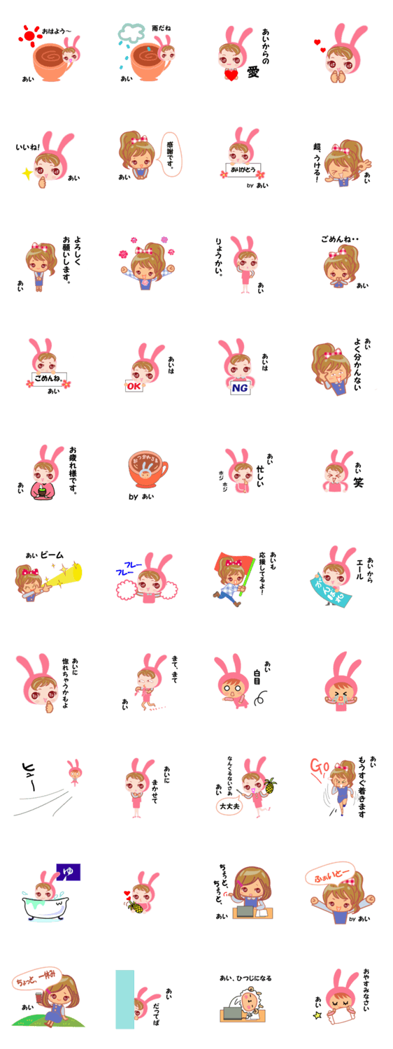 あいちゃん専用のスタンプです。 時には、うさこのノリで楽しめます。全国のあいちゃんに届け。