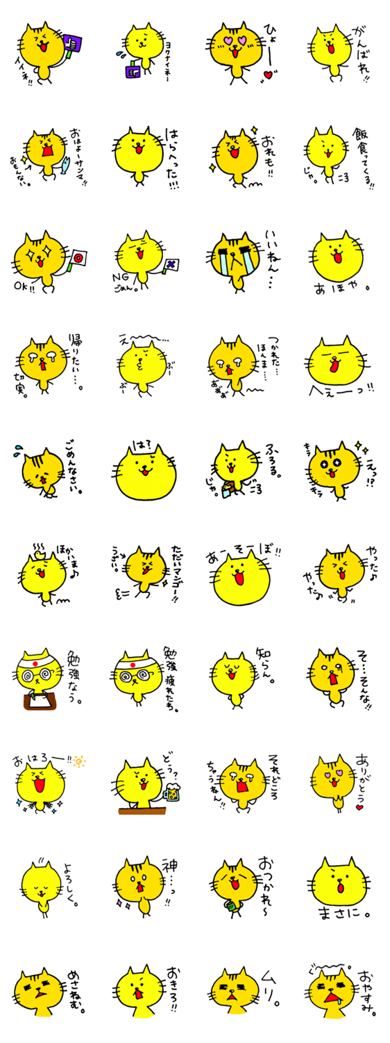 黄色い兄猫とオレンジ色の弟猫。兄の方がちょっとえらそうで、弟はひょうきん者。見分け方は色もだけど、弟のおでこの三本線。日常で使いやすいスタンプ作ってみました!