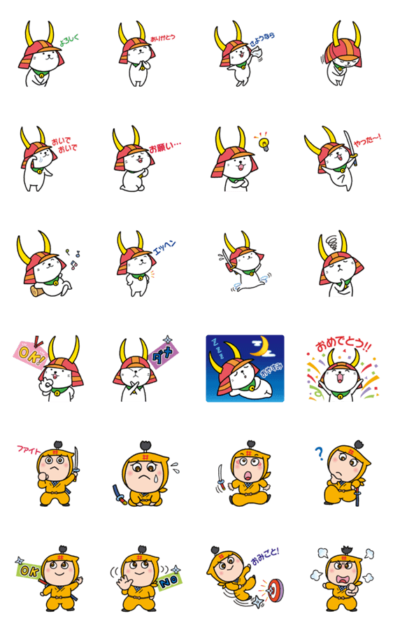 | スタンプ説明 | 彦根市キャラクター「ひこにゃん」のスタンプができました。新キャラクター「いいのすけ」もいるよ! |