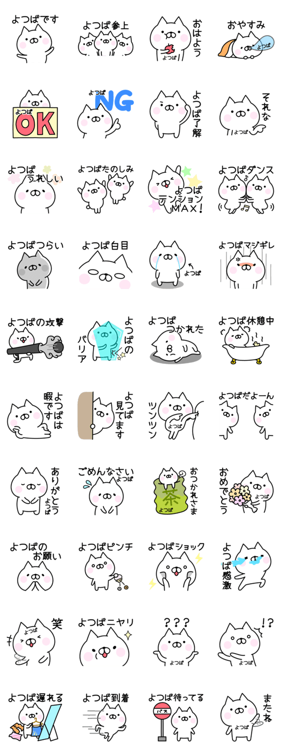 よつばさん、よつばちゃんが使いやすいお名前スタンプです。かわいいねこが、よつばさんの気持ちを表してくれています。よつばさんへのプレゼントにも最適です。