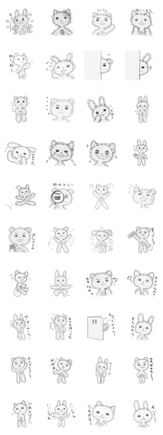 腹毛が生えた仲間達のスタンプです。