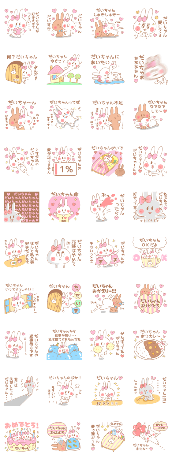 だいちゃんへ。彼女(嫁)から彼氏(旦那)へ送るガーリーな名前スタンプ。だいすけ(大輔/大祐/大介)だいき(大樹/大輝)だいち(大地)だいきち(大吉)だいじろう・だいご