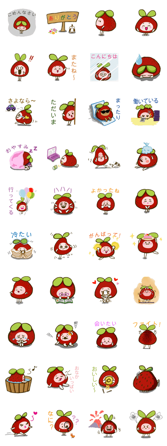 | スタンプ説明 | Hi! I'm Berrychan. This is Thai version of my daily life. I'm sweet and fun-loving. The little dog is called Sompong. More of my friends and I are coming soon! |