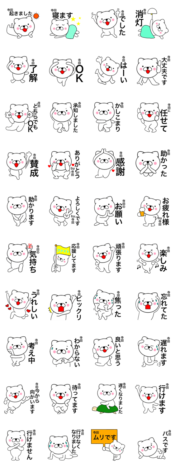 良く使う言葉を集めた、毎日使えるシンプルで可愛い寺田専用の猫のスタンプです。
