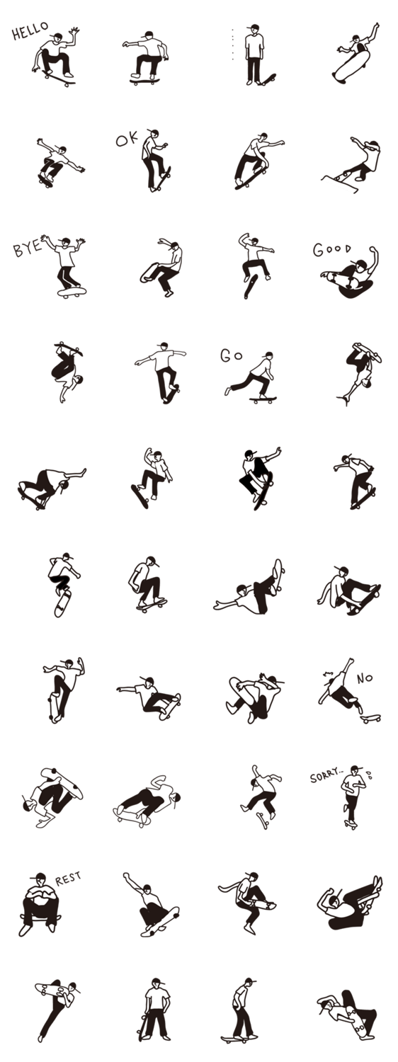 MONOTONE SKATE BOADER -LINEスタンプマニア