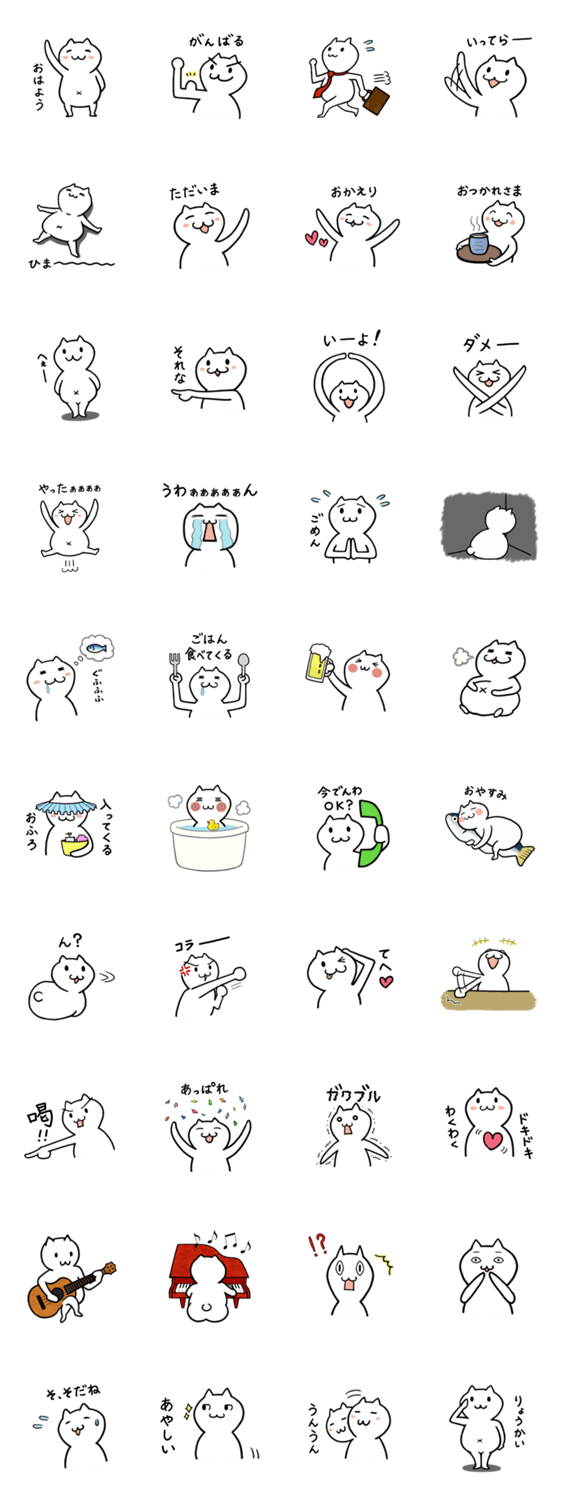 白ネコのあいうえお・・・ってるスタンプ