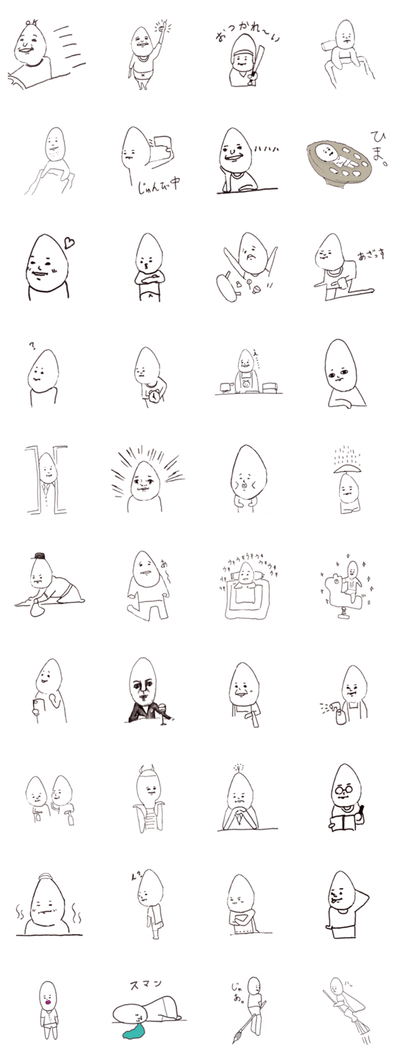 | スタンプ説明 | どこにでもいる普通のらっきょの日常をスタンプにしました。顔の部品が小さいので彼らの表情を目を凝らして見てください。実は表情豊かです。 |