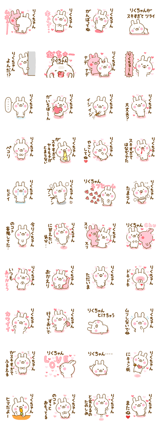 好きすぎる♥りくちゃん♥に送るゆる~く、可愛いうさぎ(うさひな)の毎日使えるラブラブ名前スタンプ第2弾です♥