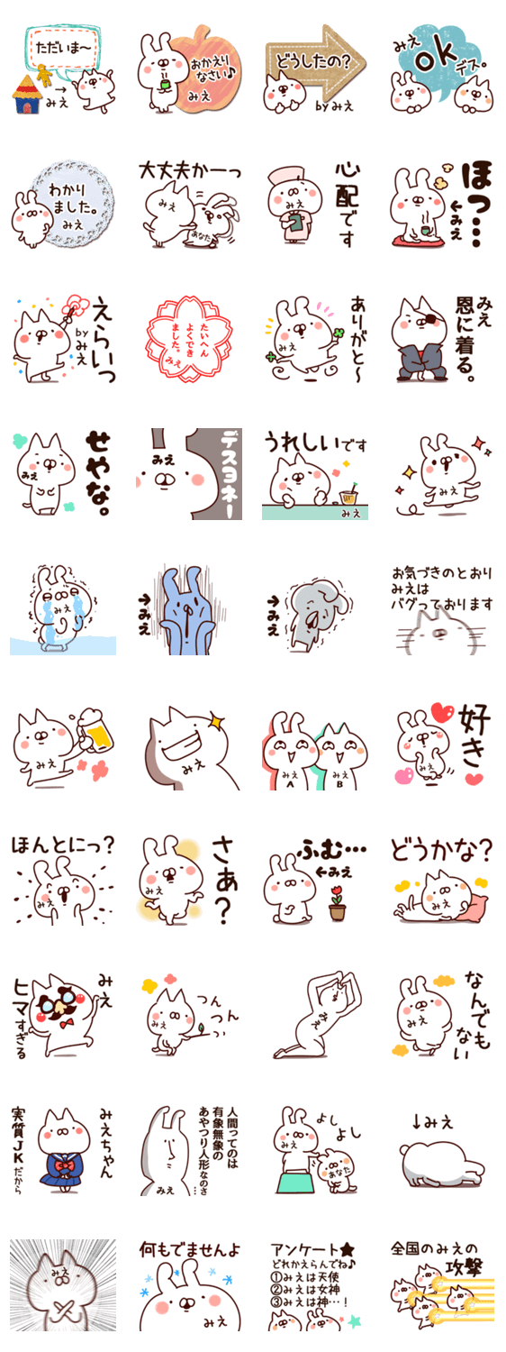 みえ/ちゃん/さん/使う/名前/あだ名/名字/スタンプ続編/ミエ/みえこ/みえか/みえの/みえな/みえみ/みえよ/みえり/みえは/みさえ/みなえ/みかえ/みつえ/美恵/専用/面白い