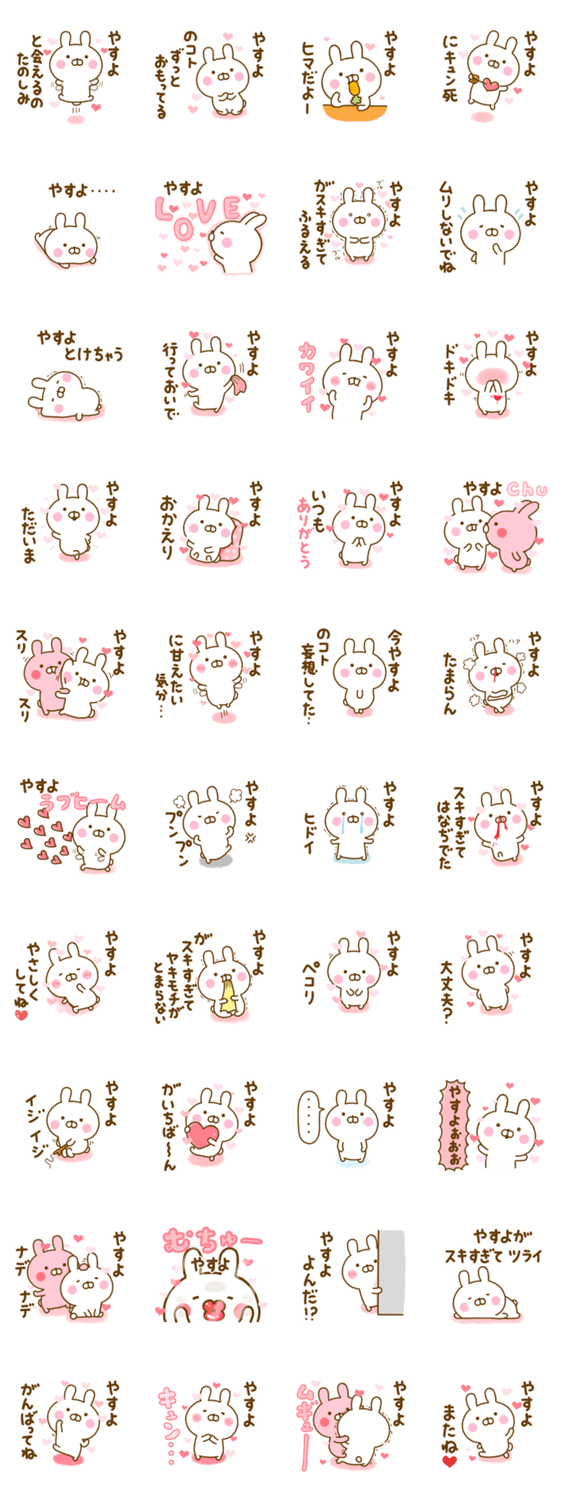 ゆる~く、可愛いうさぎ(うさひな)の好きすぎる♥やすよ♥に送るラブラブ名前スタンプ第2弾です♥
