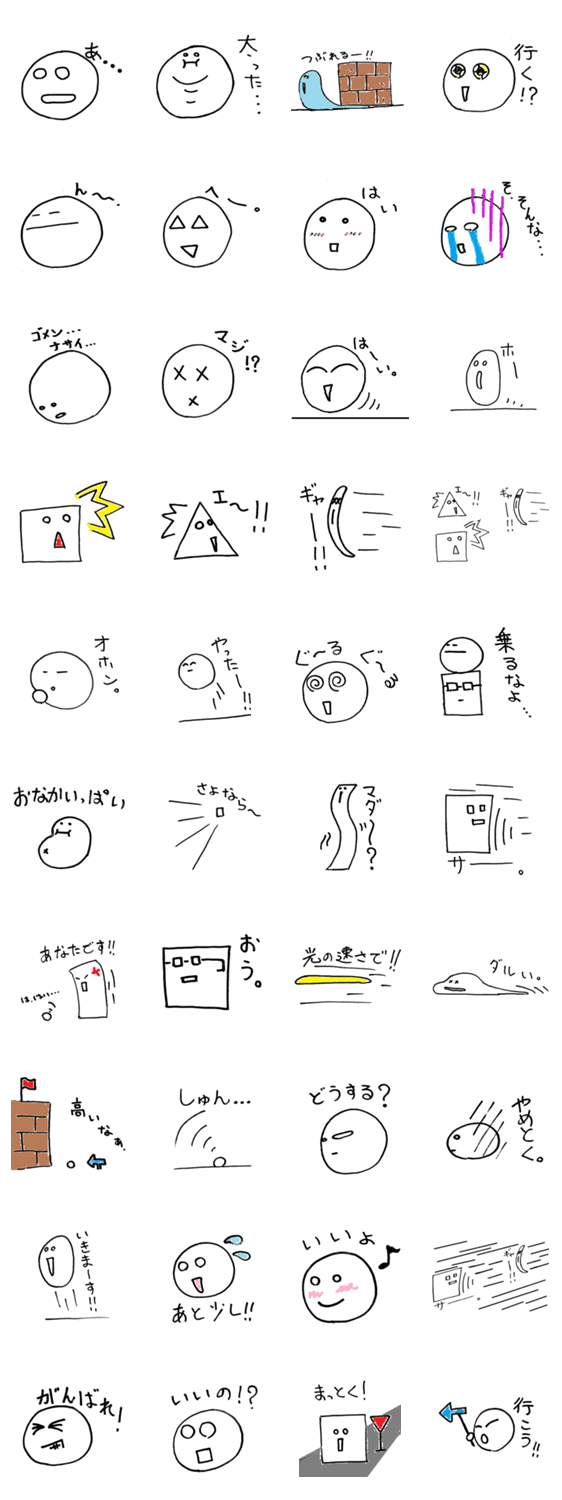 スタンプ説明 丸顔と四角の顔のスタンプ♪第一弾!