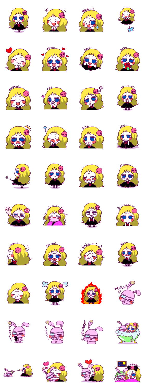 おんなの子は喜怒哀楽が激しめ。そんなおんなの子と仲良しのガンタイをしているうさぎ、2人のスタンプ。楽しく気軽に使っていただければと思います!
