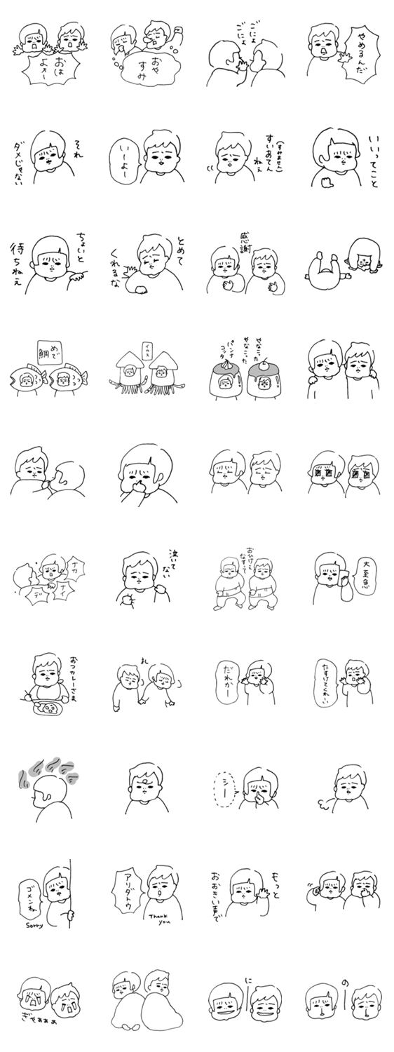 スタンプ説明 双子の姉弟 モノクロスタンプ