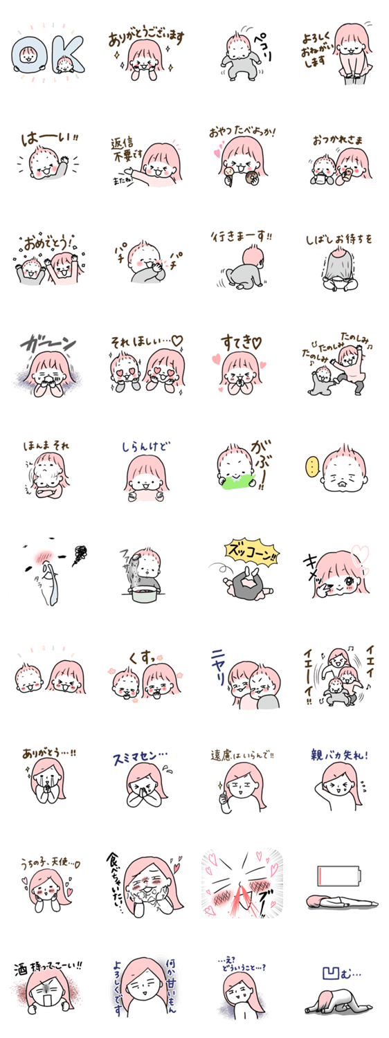 3歳児イチコと赤ちゃん二太郎、その母モチコのスタンプです。 日常会話にも、親バカな会話にも、ママ同士の会話にも、旦那さんへのメッセージにもどうぞ!