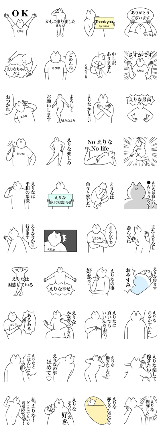 えりなちゃんの名前スタンプです。敬語多め。 可愛い面白いシュールなエリナさんへ。恵里奈、恵理奈、恵梨奈など。