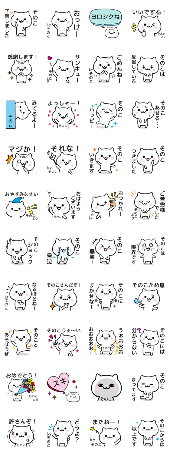 そのこ/ソノコ/苑子/園子/その子さんが使える、猫の名前スタンプです。日常会話で毎日使える基本セットになっています。