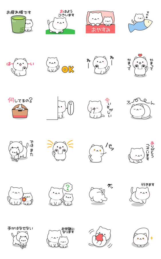 白ネコのあいうえお・・・ってるスタンプ