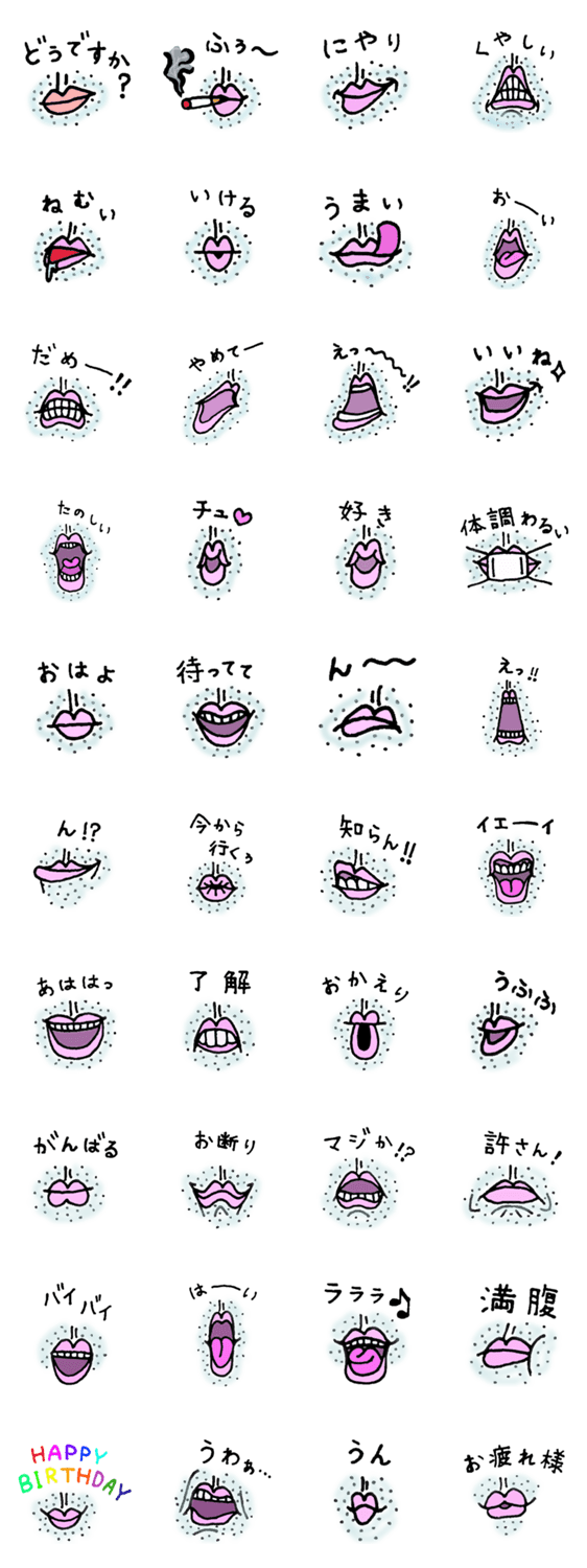 気になるくちびるのスタンプ。色んな感情をお楽しみ下さい。きっと、クセになる。