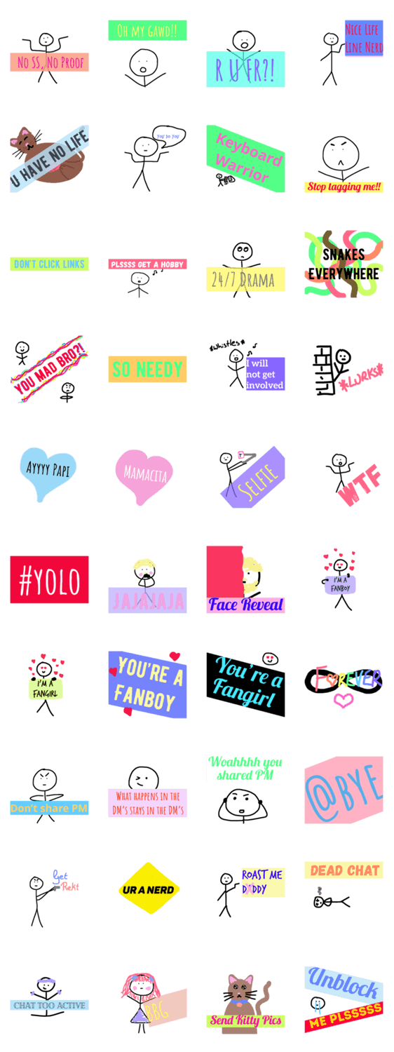 | スタンプ説明 | Sassy, sweet, mischievous and cute sticker to use with friends. Includes cute people and sweet animals. For fanboys and people who dont get involved |