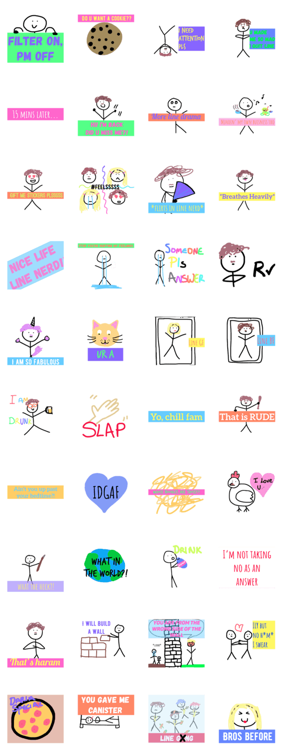 | スタンプ説明 | Sticker for people who are sassy, cool and a little rude, or like building walls. Contains lots of emotion, moods and fun words |