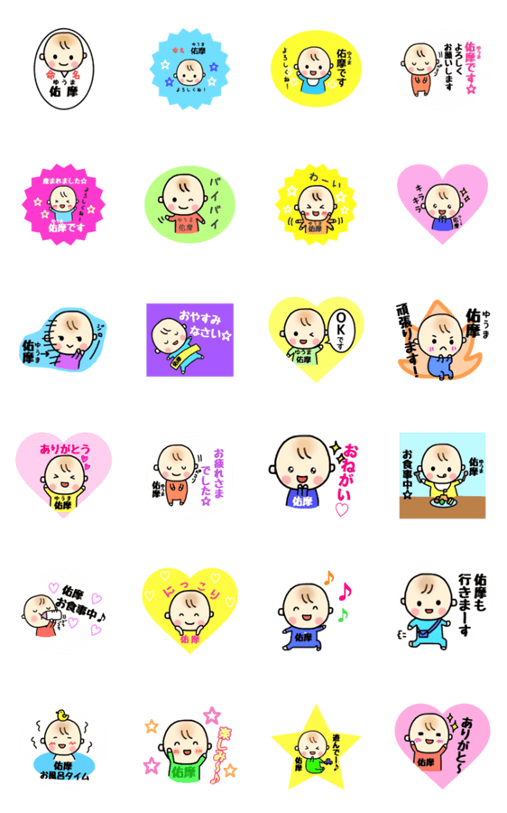佑摩(ゆうま)くん専用スタンプ!子育て中のママ、パパに使って貰えると嬉しいです。