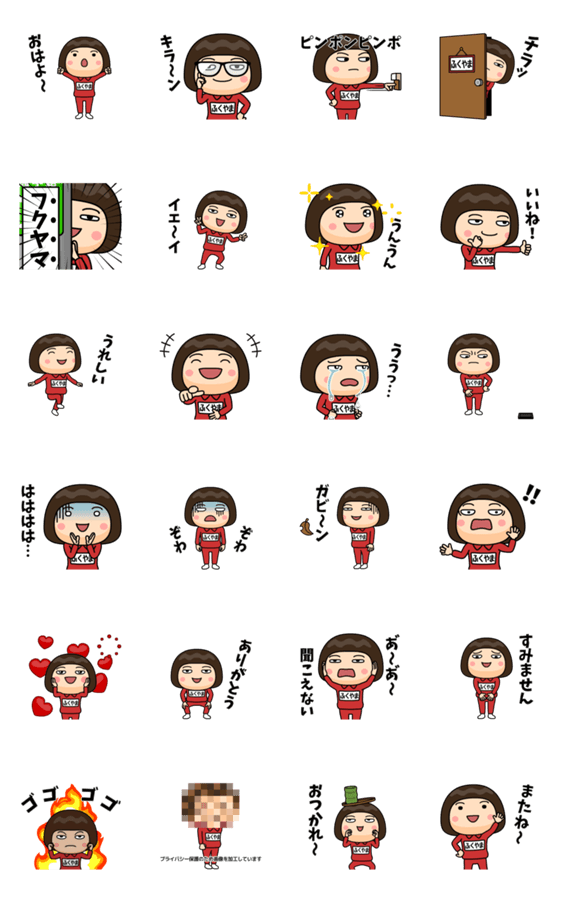 ふくやま(福山,富久山)が使うアニメーションスタンプ。ジャージになまえが入っているので、名前スタンプでありながら自然な言葉で会話ができる優れモノ。干物女♪