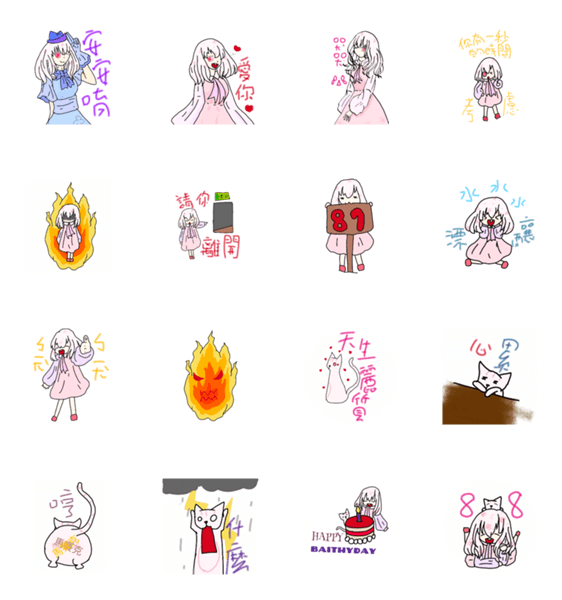 白ネコのあいうえお・・・ってるスタンプ