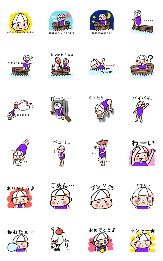 佐渡島に住みたくて、たらい舟を住処にしているスイスイ。佐渡UIターンサポートセンターのキャラクターがスタンプになりました。