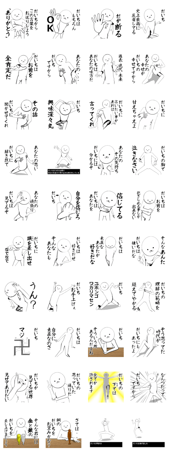 癖が強めな名前・名字スタンプです。「だいくん」「だいちゃん」もあるよ
