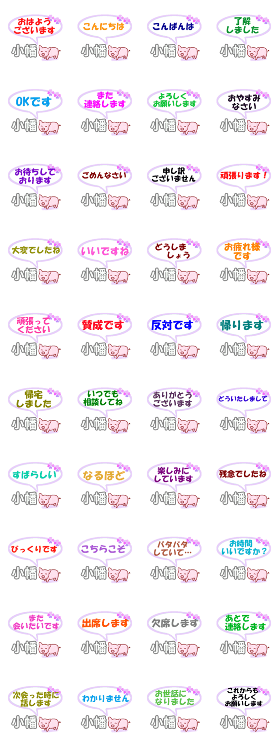 小幡「おばた」さん専用。おはようございます、了解、出席、欠席、賛成、反対など大人の丁寧な日常会話、連絡用にどうぞ