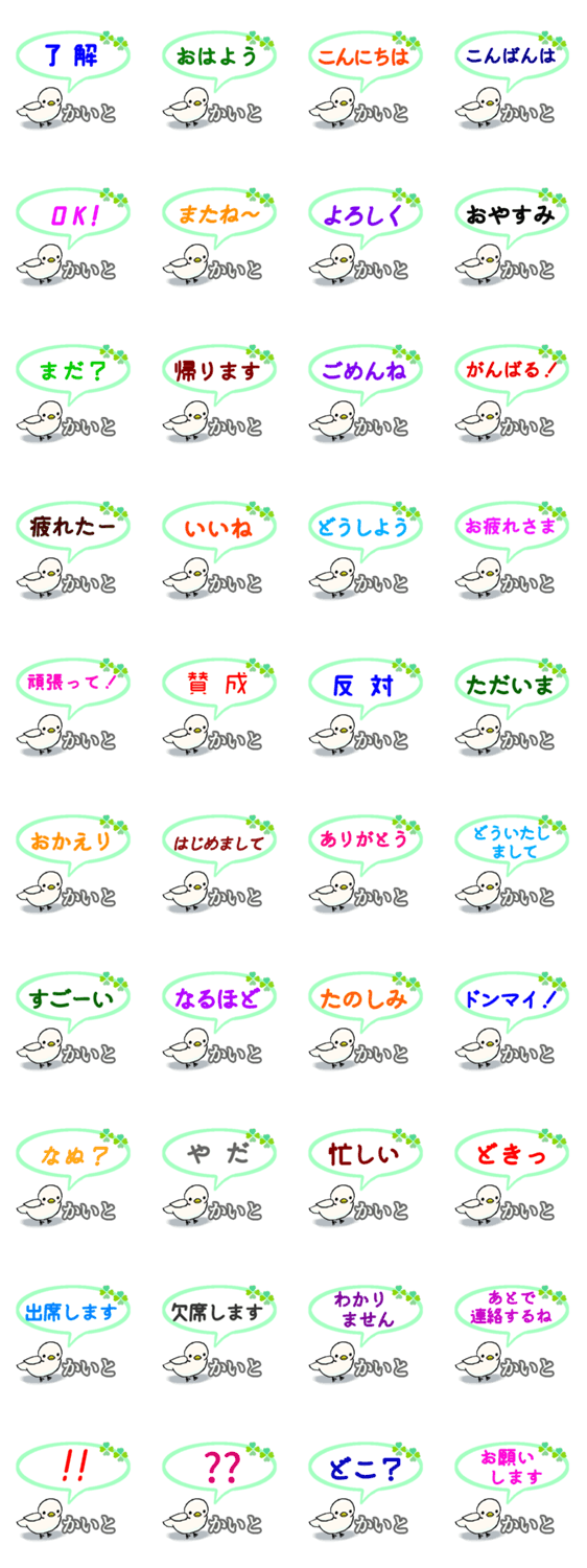かいとさん専用。おはよう、頑張って、了解、出席、欠席、賛成、反対など挨拶、日常会話、連絡用にどうぞ。