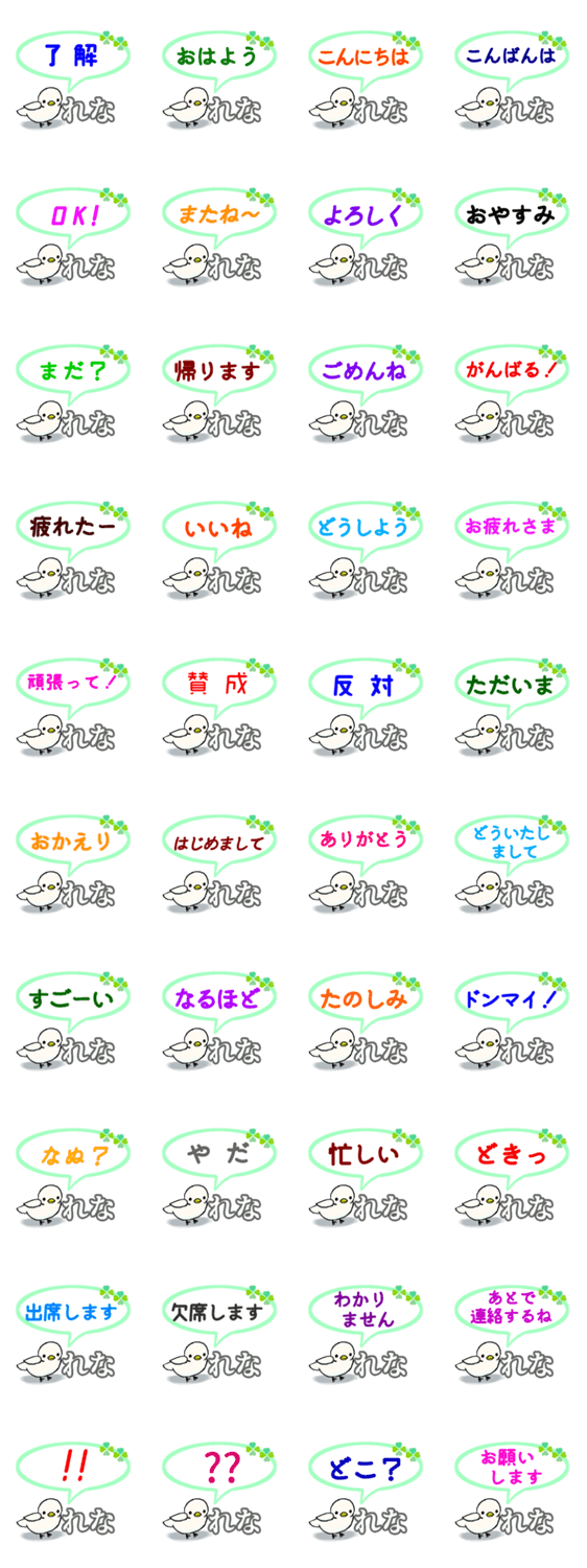 れなさん専用。おはよう、頑張って、了解、出席、欠席、賛成、反対など挨拶、日常会話、連絡用にどうぞ。