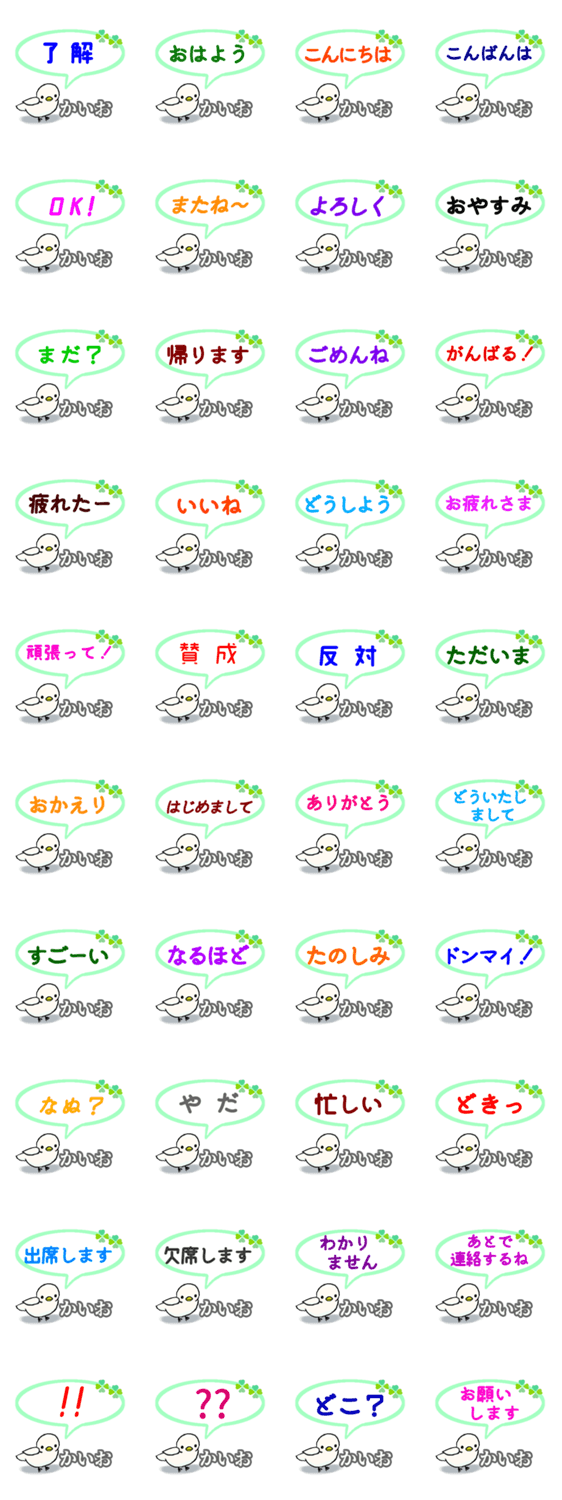 かいおさん専用。おはよう、頑張って、了解、出席、欠席、賛成、反対など挨拶、日常会話、連絡用にどうぞ。
