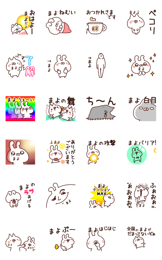 まよ/ちゃん/さん/くん/使う/名前/あだ名/名字/スタンプ続編/マヨ/まよこ/まよか/まよの/まりよ/まなよ/まさよ/まよな/まよえ/まよね/まより/まよは/麻世/万葉/真世/専用