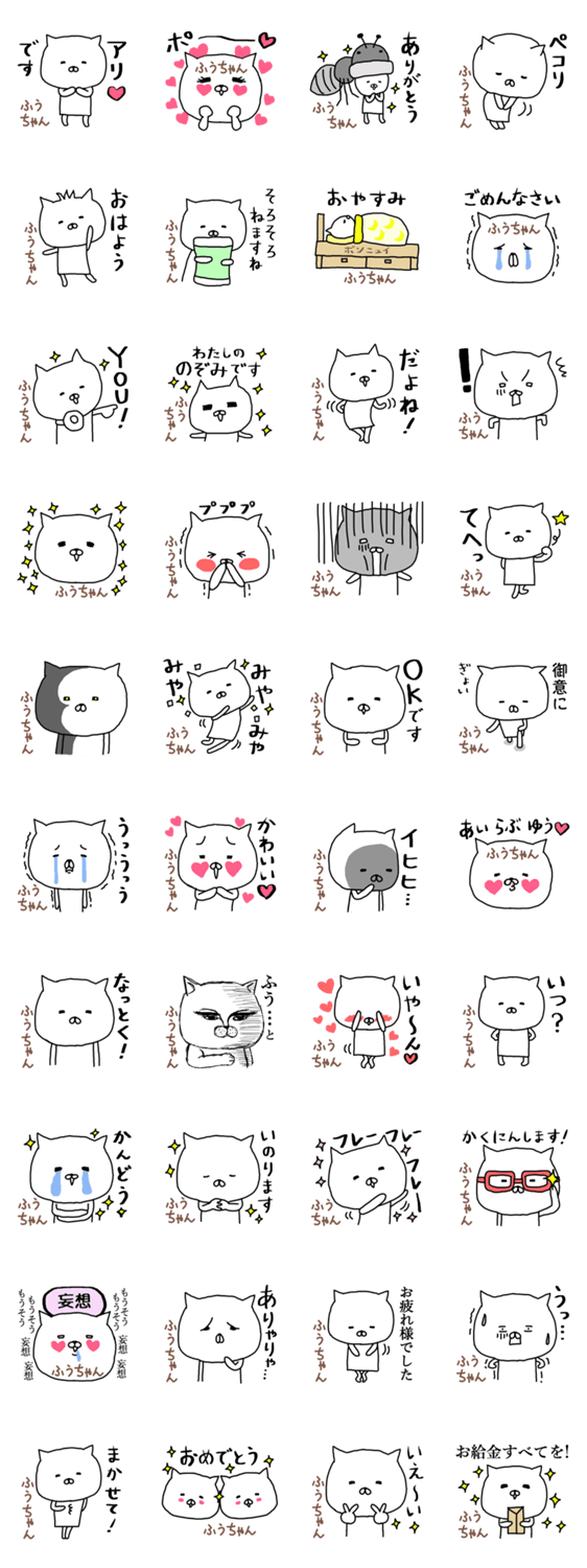 「ふう」ちゃん専用スタンプ(白ねこ) -LINEスタンプマニア