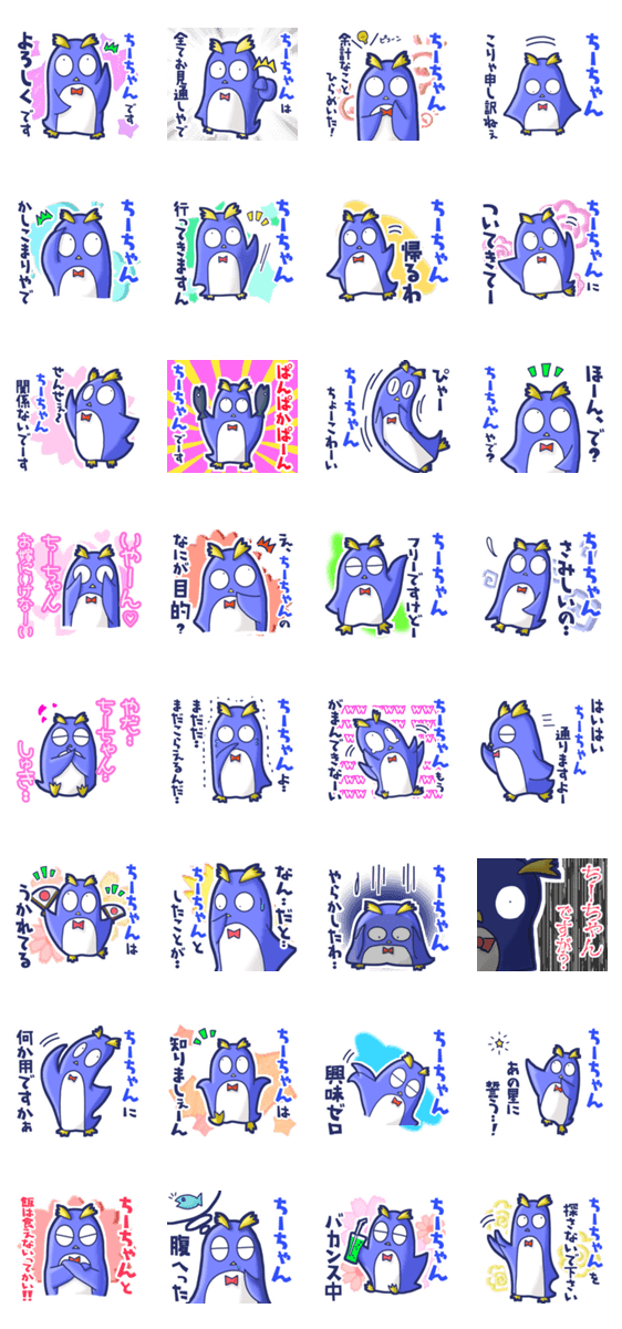 ゆっけ。が贈る【ちーちゃん】用名前スタンプ05です。友達や恋人とのやりとり、グループの連絡にぜひ。《ゆっけ。のアニぱ!》05「てきとーなペンギン」のスタンプです。