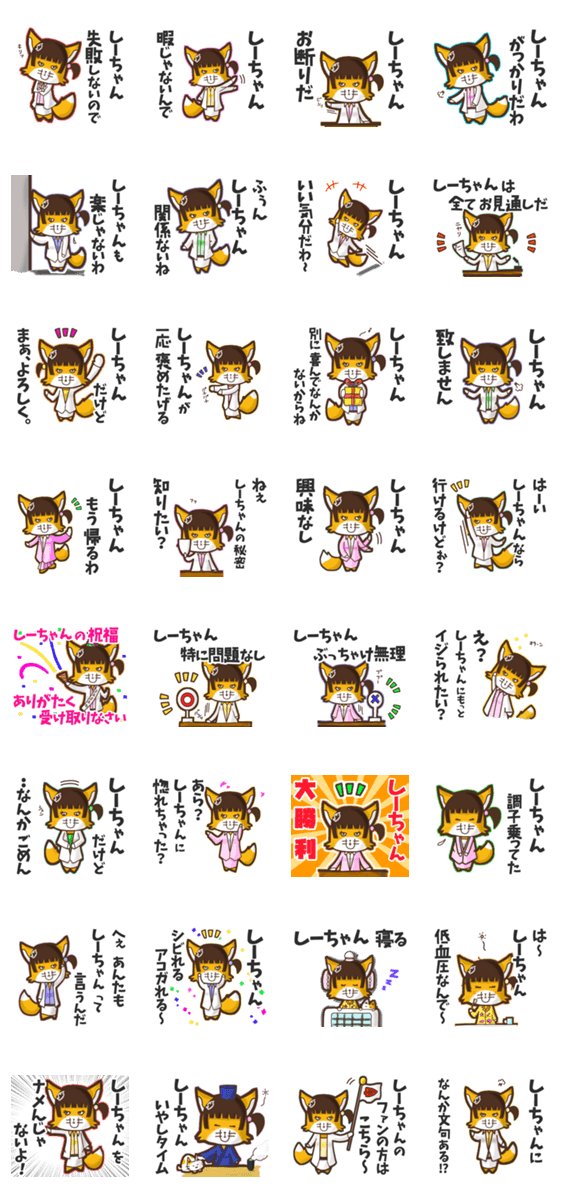 ゆっけ。が贈る【しーちゃん】用名前スタンプ06です。友達や恋人とのやりとり、グループの連絡にぜひ。《ゆっけ。のアニぱ!》06「きつねのてんくー姉妹・姉てんこ」です。