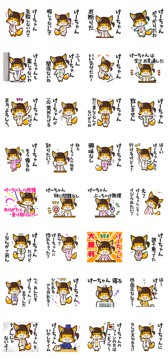 ゆっけ。が贈る【けーちゃん】用名前スタンプ06です。友達や恋人とのやりとり、グループの連絡にぜひ。《ゆっけ。のアニぱ!》06「きつねのてんくー姉妹・姉てんこ」です。